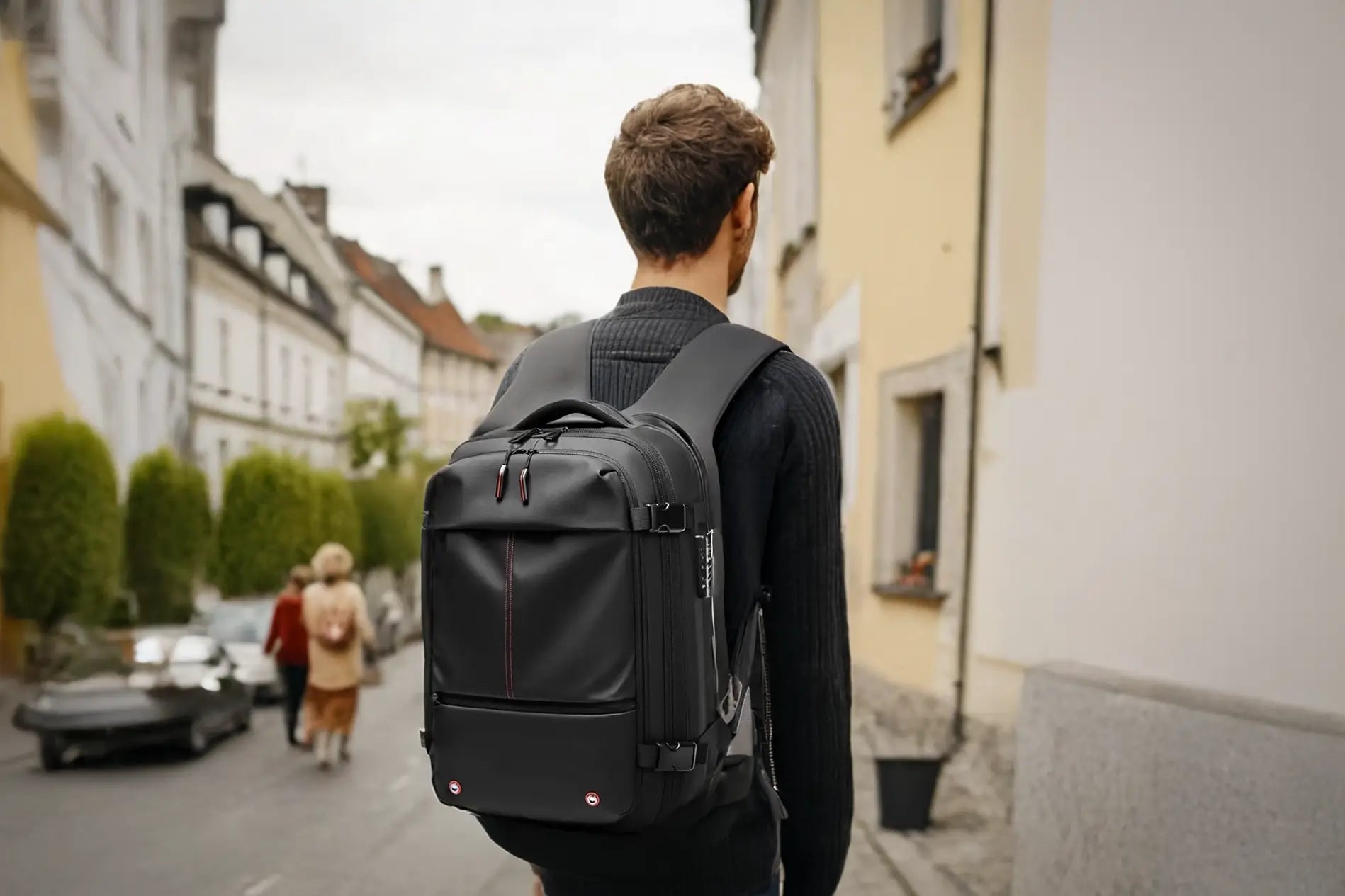 As a frequent business traveler, I appreciate how the backpack seamlessly fits on top of my suitcase with its convenient luggage strap. The waterproof material was a lifesaver when I got caught in unexpected rain on my way to the airport. Despite its sleek and professional design, it holds far more than I anticipated. An essential companion for any traveler!